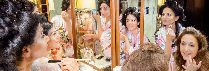 Nadine opted to get ready in the luxurious surroundings of Claridge’s in London. Our experience is that more brides are choosing to use a hotel suite for their preparations - typically the one in which they are spending their wedding night - because it adds comfort to their special day as well as to our images. We are happy to work in whatever environment the bride or groom chooses. However, a hotel gives us more of a “blank canvas” backdrop to work with, and it also means the bride (or her family) do not have to worry about anything.
