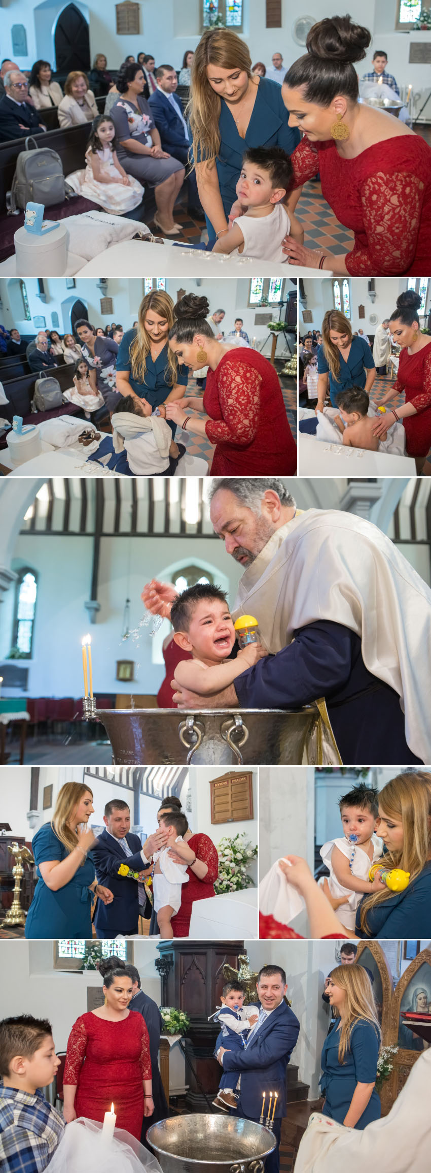 Although there are tears at a wedding, they’re usually the happy sort. Orthodox christenings, however, are another story! Baby Alex’s big day started with sunshine and smiles, but his mood swiftly deteriorated when his two Godmothers prepared him for a chilly dip in the font. There was no need to worry though, as Alex was in good hands with Father Damianos. The priest is something of a St Katherine Barnet Christening baby whisperer, respecting that babies can feel scared in the unfamiliar setting, and calming them with his gentle demeanour. It wasn’t long before Alex was smiling again.