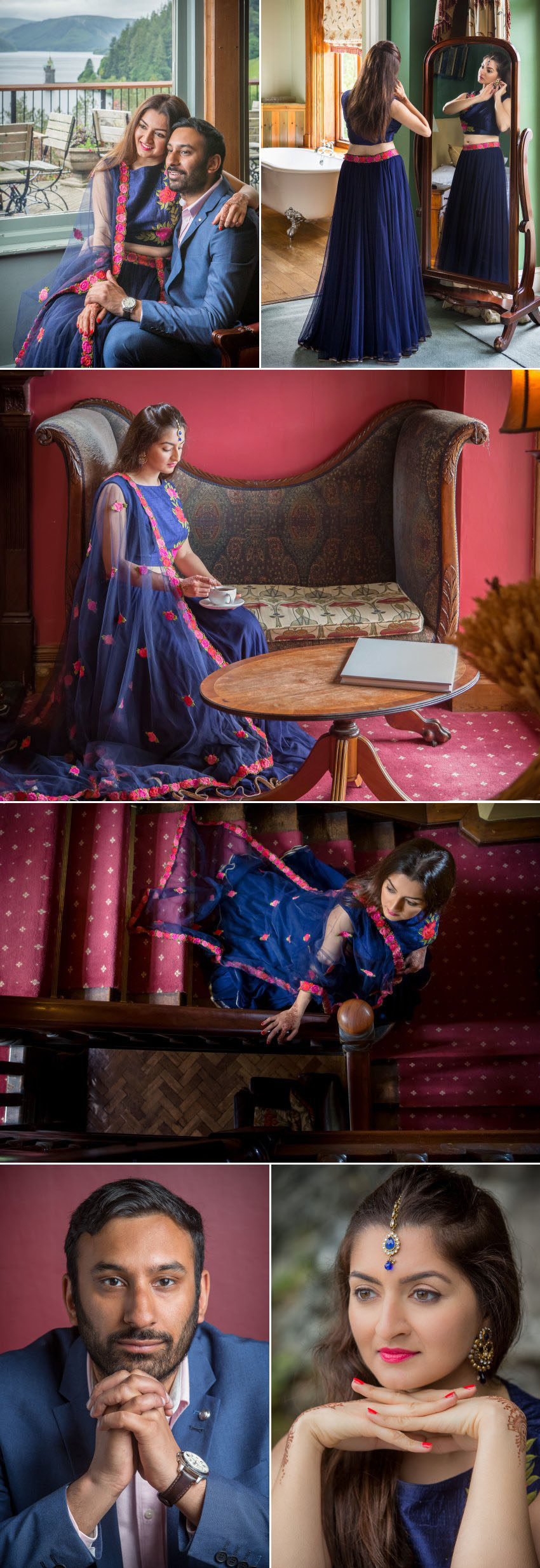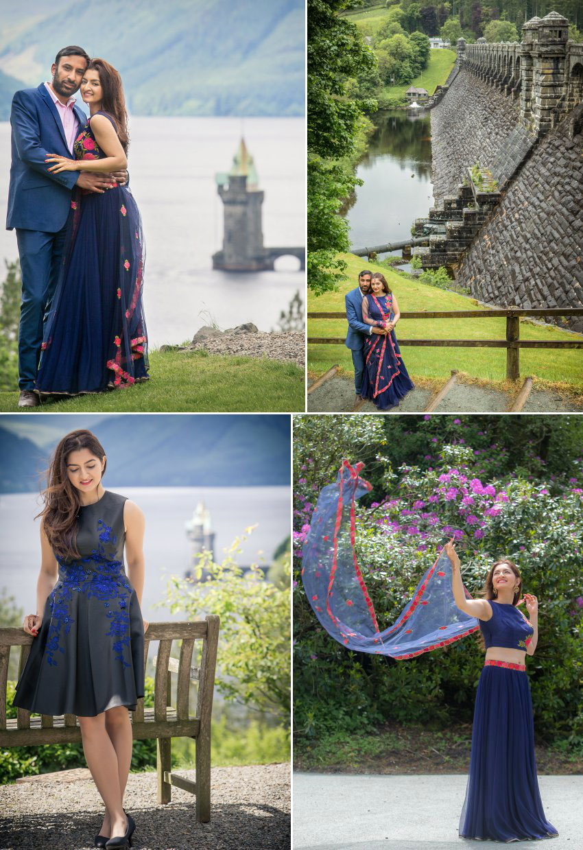 As Chandni and Pinal were having their Hindu wedding in Holborn London, they wanted a different location for their session.Being from Wales, Chandni also wanted to reflect her homeland and so Lake Vyrnwy was chosen as the backdrop. It is difficult to believe that this picturesque lake is a man-made reservoir created in the 1880s. In a more ordinary setting, the rain clouds may have overshadowed the scenery but here, against the weathered stone dam that also serves as a bridge, they only add to the dramatic beauty and highlight the strength of love in the face of what life has in store.