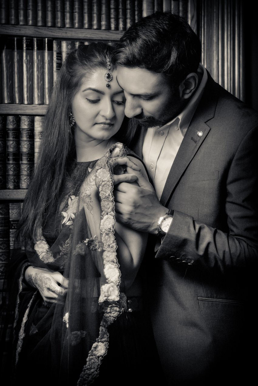 I always recommend couples bring at least one change of clothing to their session because altering their outfits is the easiest way to change the atmosphere of a photo. The images of Chandni and Pinal in the boat and on the banks of the lake are relaxed and youthful, highlighting their romantic side. By comparison, the shots from the hotel have a more grown-up, serious feel thanks to Pinal’s suit and Chandni’s sari.