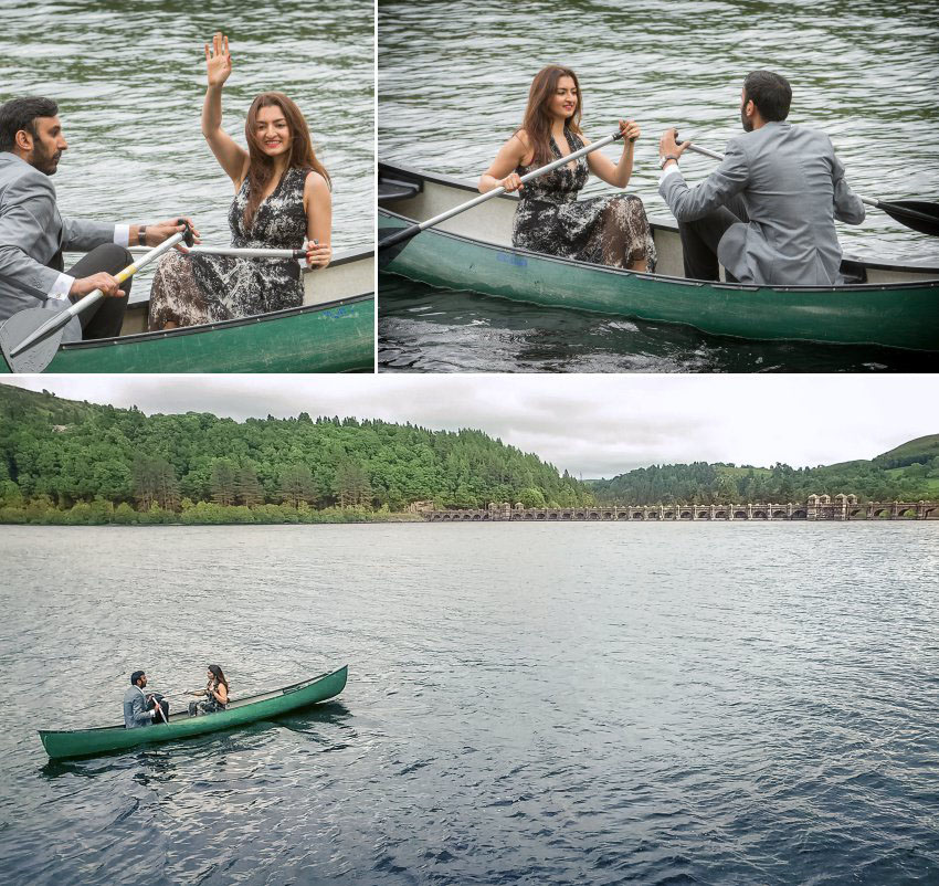 The weather was not on our side at Lake Vyrnwy, but we made it work. Even in summer (especially in a British summer!), it is not possible to ensure perfect conditions, so the key to a successful session is to anticipate the best, the worst and everything in between, and to have a plan. In this instance, we used a location which looks fantastic in any weather. The shots on the bridge and in the boat would have been equally as lovely on a sunny day with clear blue skies. We also had an alternative indoor location where we could stay dry while still featuring stunning views of the lake. Finally, we worked quickly to make the most of the sunshine when it appeared, creating a portfolio of varied images which offered the couple plenty of choice.