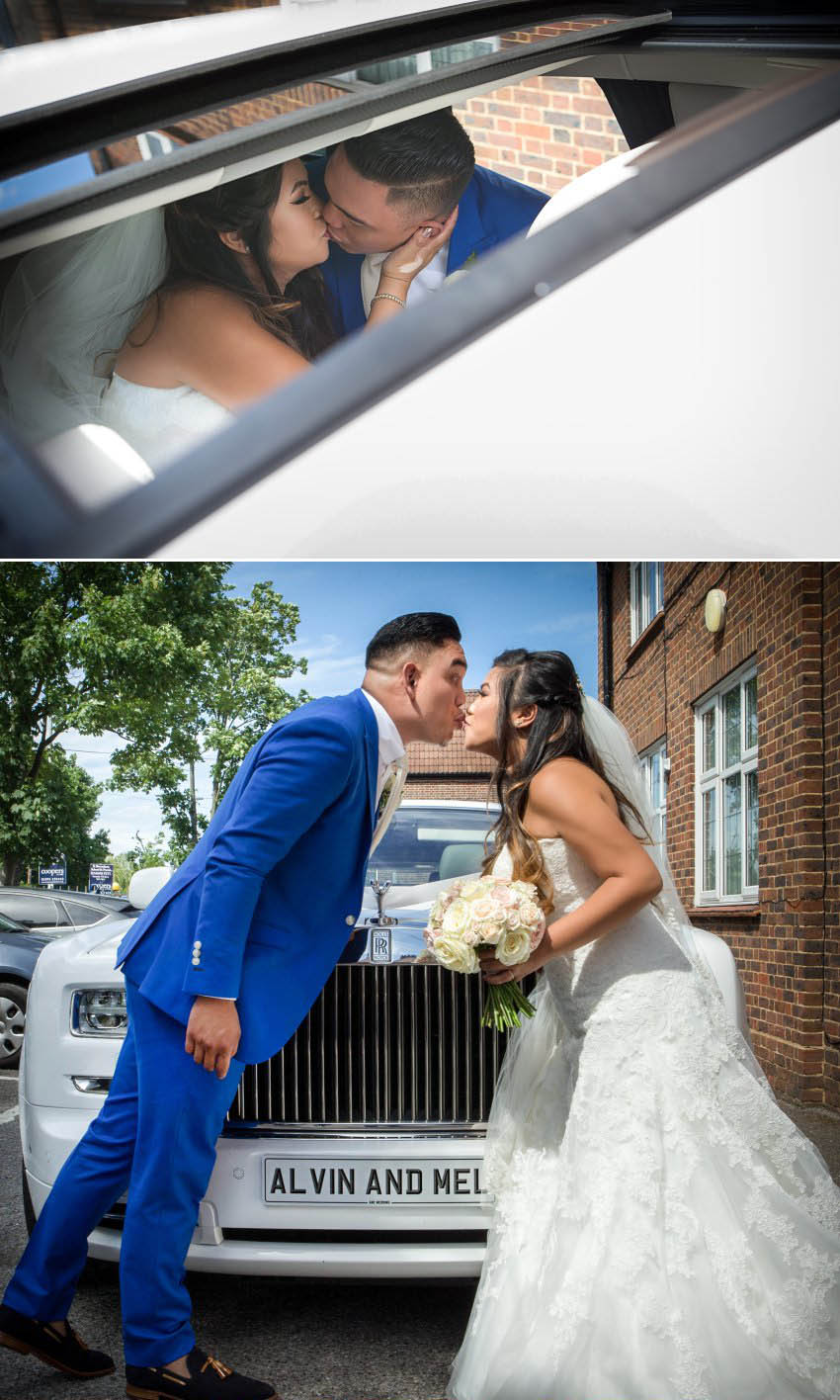 Once the wedding was finished, and we had taken some great group family shots as well as some more of the happy couple walking out of the church into a shower of petal confetti, it was time for everyone to make their way to the reception venue. Alvin swapped his sports car for the regal elegance of the Rolls Royce Phantom that had conveyed the bride to the church. We made use of the sports cars once we got to the hotel – any excuse to take a few more shots of these beautiful vehicles! The personalised number plates Alvin had arranged for all three cars were a cute touch.