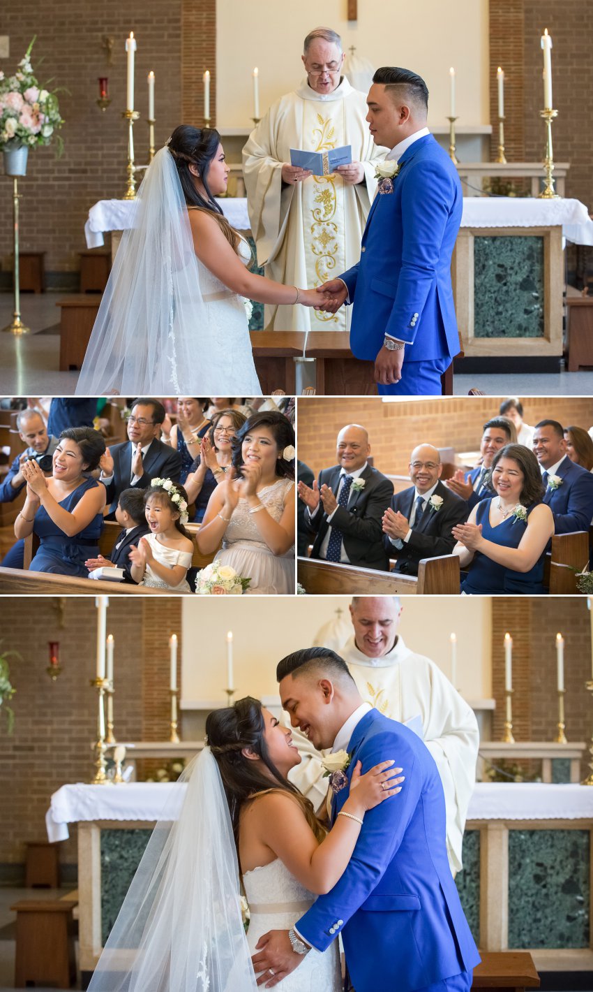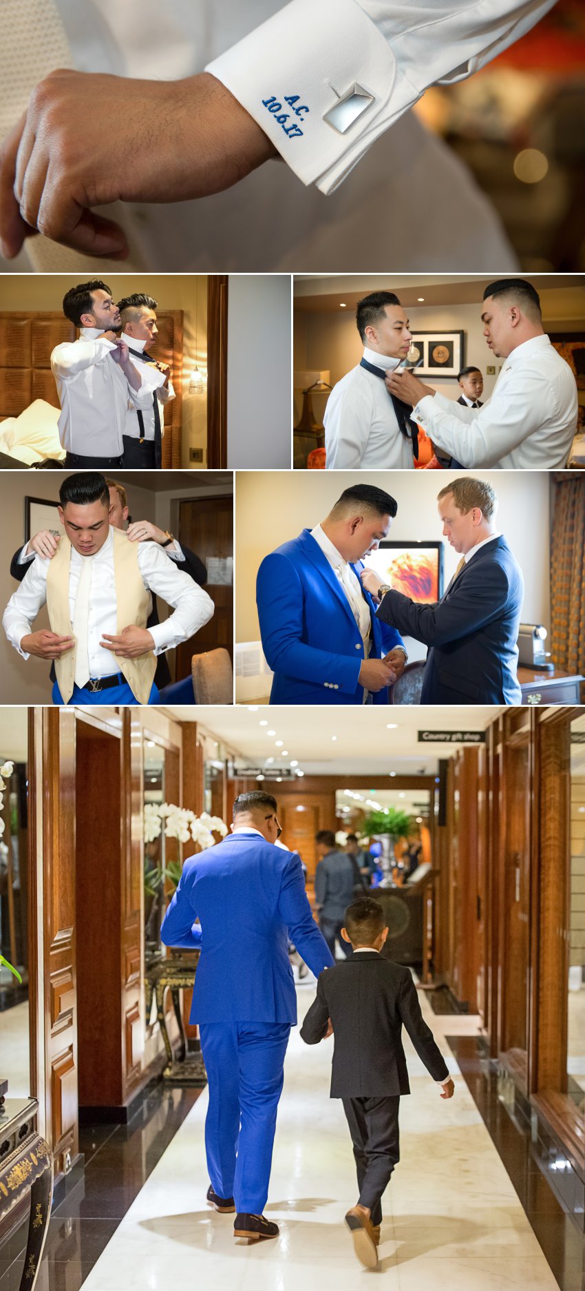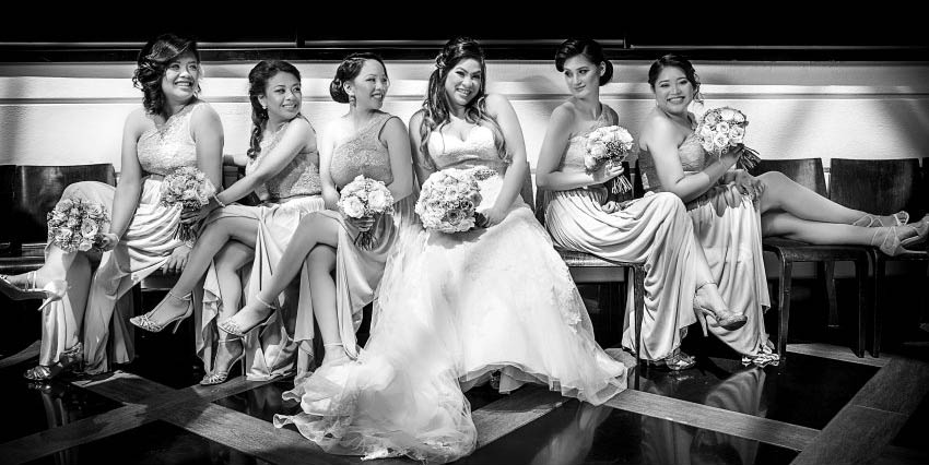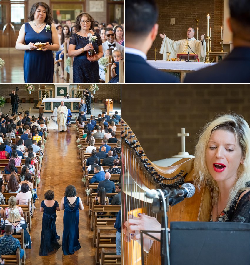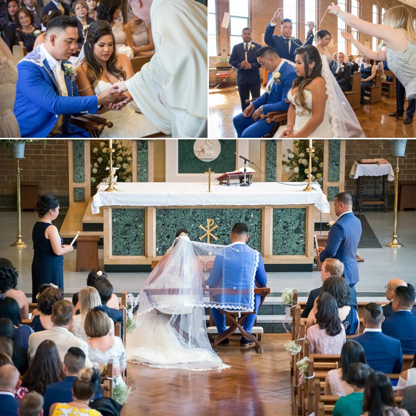 The ceremony took place at the Roman Catholic Church of St Bernadette’s where the priest incorporated a very Filipino touche at the end of the service. To symbolise that two single people are becoming one united couple, the groomsmen and bridesmaids place a veil over the couple, followed by looping a cord around their necks in an infinity symbol (or figure of eight).