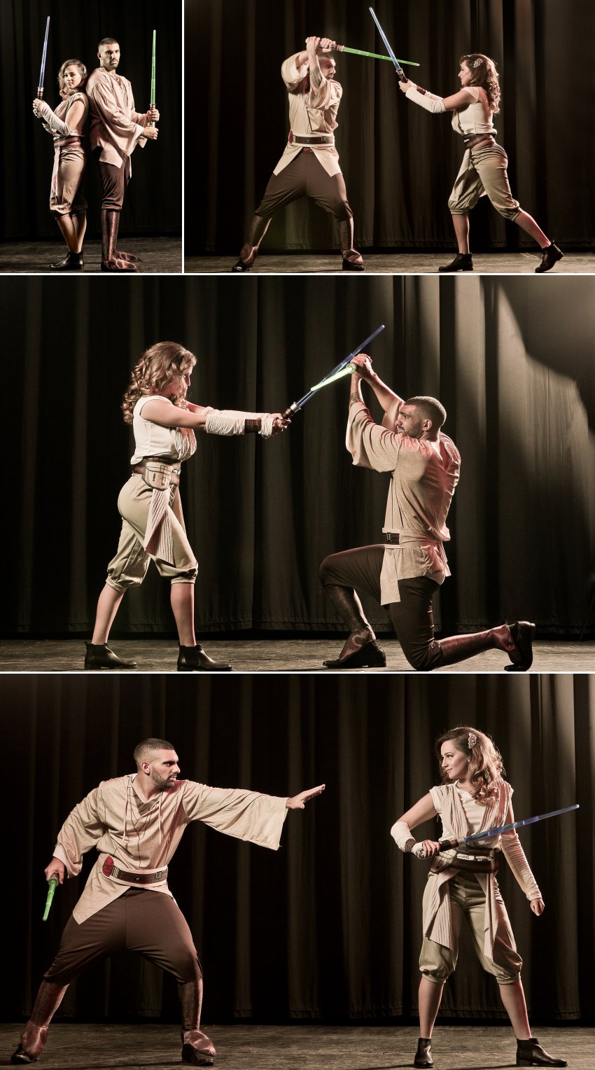 Despite this being the age of the selfie, it is normal for couples to feel an initial sense of awkwardness when it comes to their engagement images. Most of our couple’s consultations begin with me asking questions to help them decide on the perfect setting/s for their engagement gallery. Not so with Funda and Serhan! The beautiful and talented drama teacher and her handsome fiancé had very clear ideas about how they wanted their images to look, and I was excited to get on board and help them create the album of their dreams. After discussing a variety of ideas, we settled on four concepts: a Star Wars lightsaber fight; a romantic backdrop inspired by Old Hollywood glamour; a romantic outdoor shoot; and a relaxed collection showing their fun and energetic personalities.