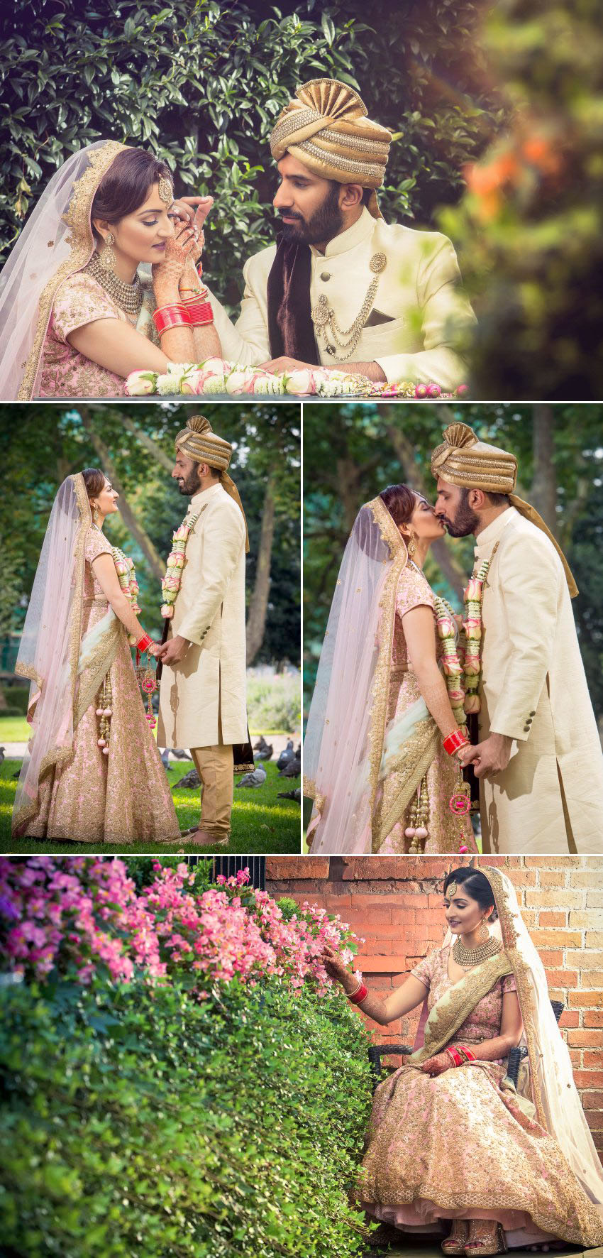 The couple chose a glamorous soft ballet pink and white colour scheme, which was timeless and did not overshadow the bride or the groom. After the ceremony, while the guests were being looked after by the hotel staff, we went into the park for shots in their wedding attire which, for Pinal, included a wedding turban or safa, and sherwani. He looked terrific – even inch a handsome prince and as confident in his traditional attire as he was in the suit into which he later changed.