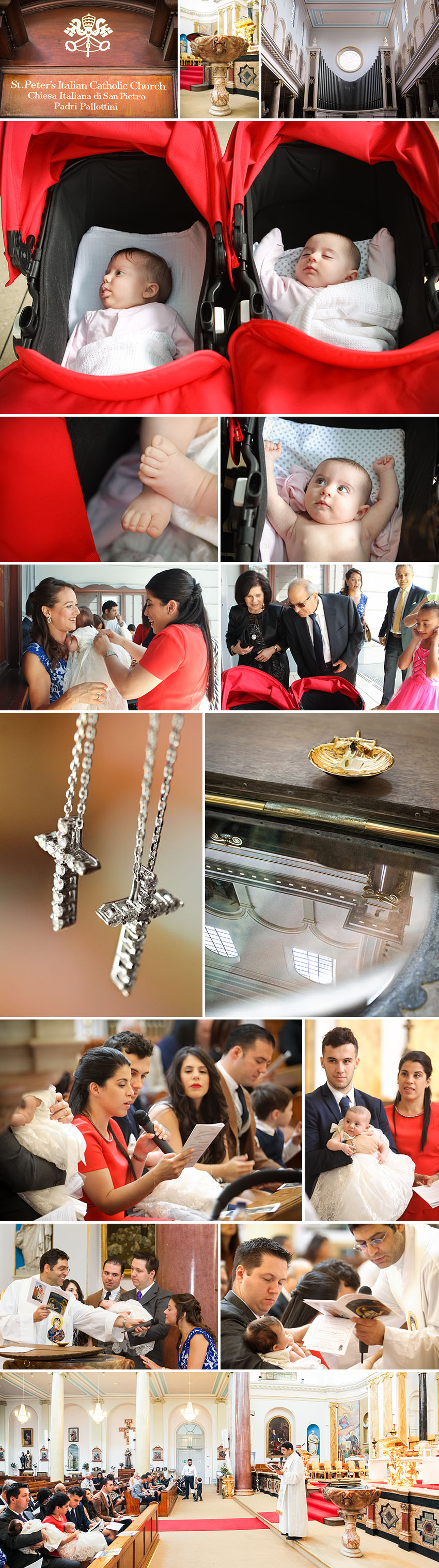 Christenings are always a cause for celebration and it was certainly a case of double the excitement when twins Emilia and Isabella were welcomed into the faith during an Italian christening at St. Peter’s Italian Church in Clerkenwell London. Adding to the “doubling”, the girls had both a Roman Catholic and a Greek Orthodox ceremony, reflecting their parents’ different Christian denominations.