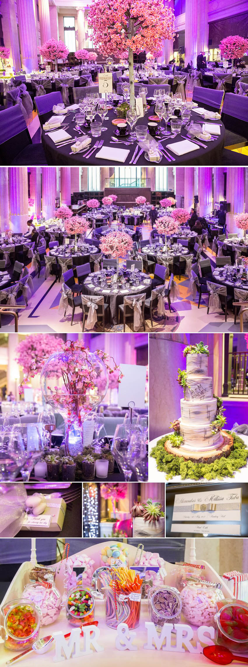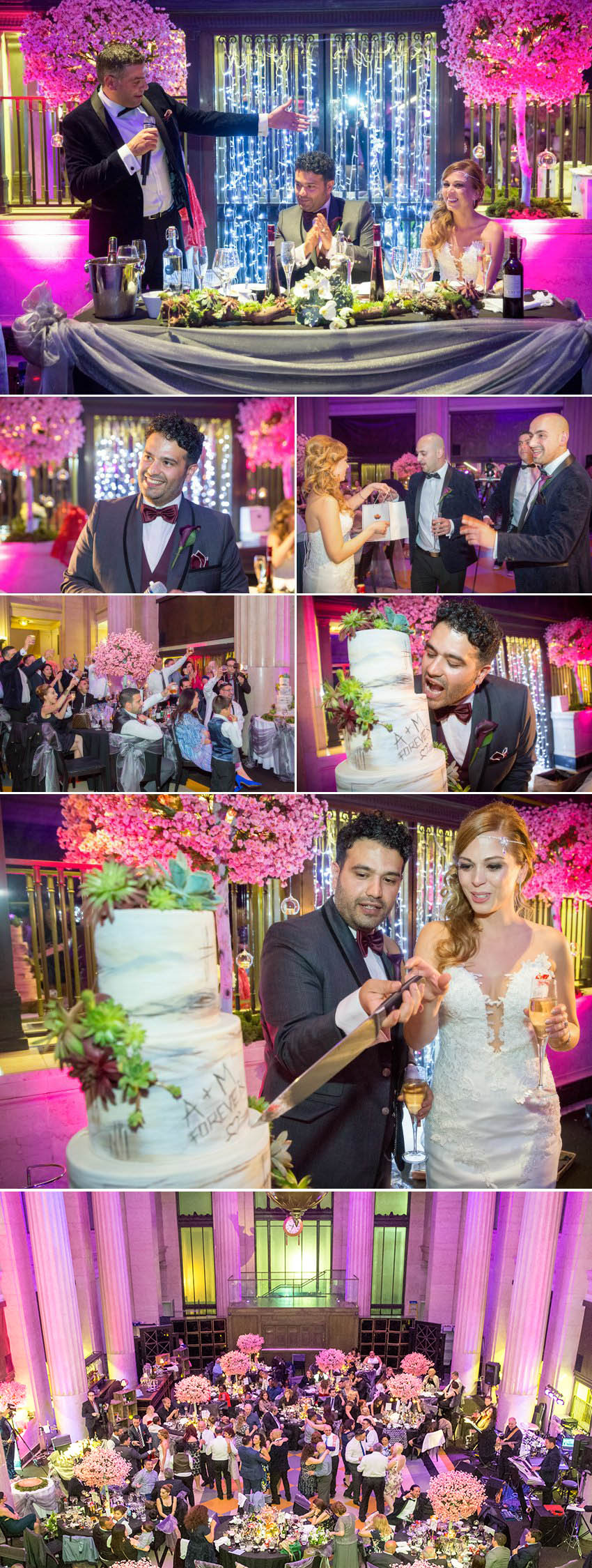 The wedding reception took place in the Main Hall, where the bride and groom made a spectacular entrance down the staircase. Like the Counting Room, the mezzanine floor has views of the Bank of England, while the towering pillars and decorative ceiling looked incredible, with coloured lighting picking out their detail and making our job even more of a pleasure. The celebrations included the customary money dance and, as the venue is licensed until 1am, the party lasted for hours!