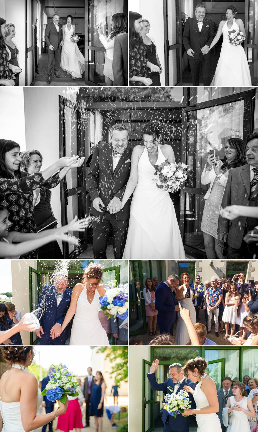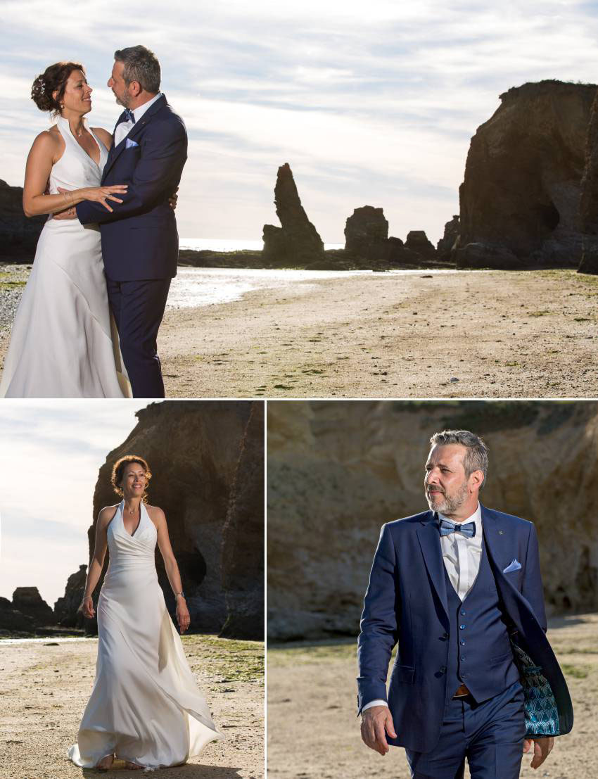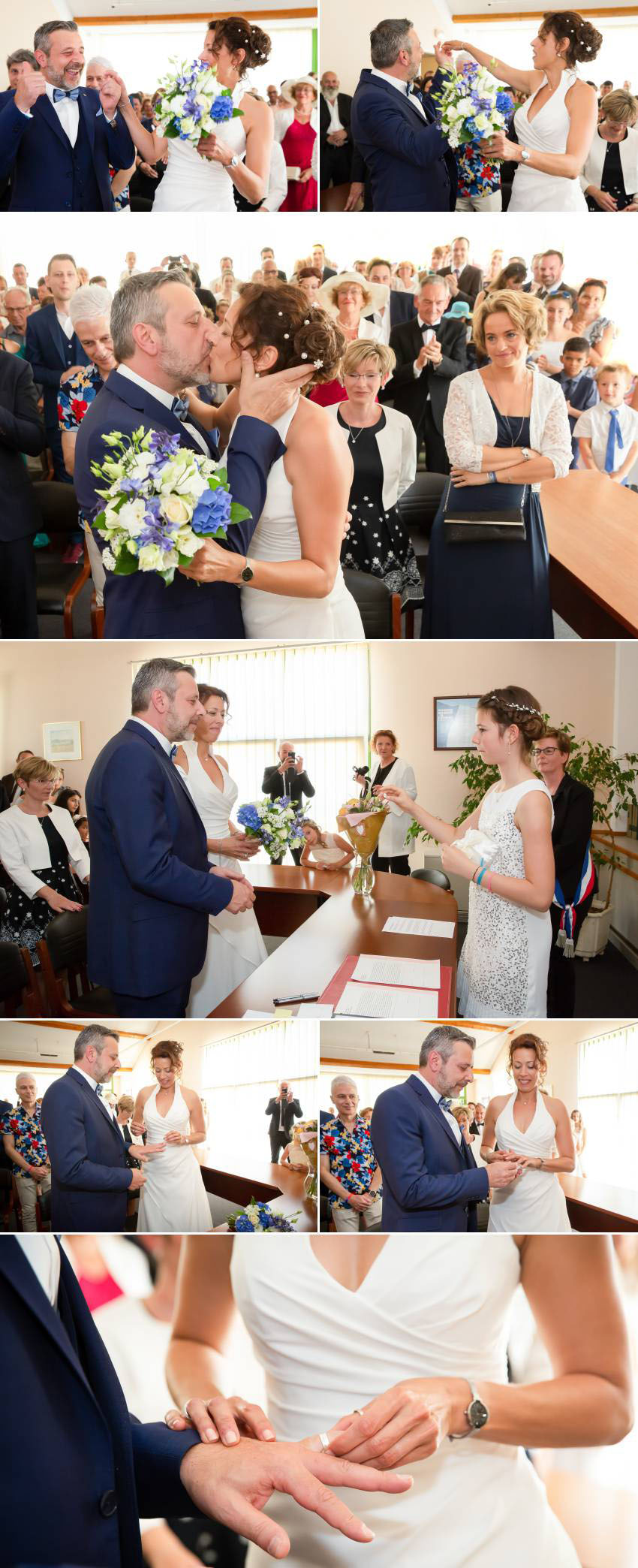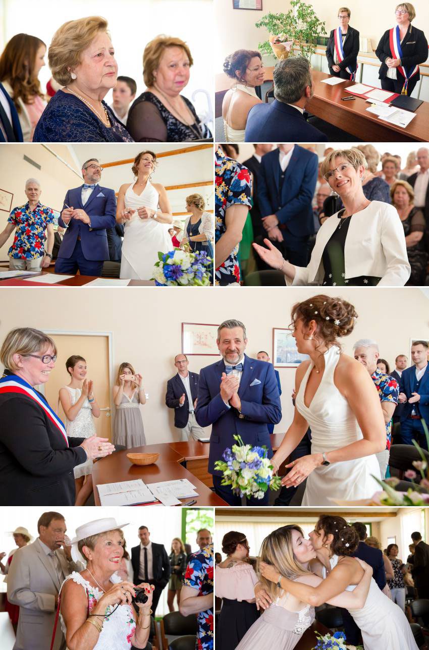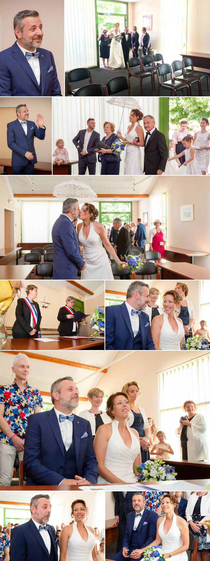 The couple were very happy campers as they dressed in their finery to exchange vows at the Mairie (Town Hall) in front of their loved ones. It was a joyous ceremony – I don’t think Valerie stopped smiling for a single moment. The shot of the newlyweds exiting to cheers and confetti is one of my favourites as their delight is so evident. While everyone else returned to Les Iles to get the party started, we went to the front beach for a romantic shoot of our handsome couple, making the most of the seaside location.