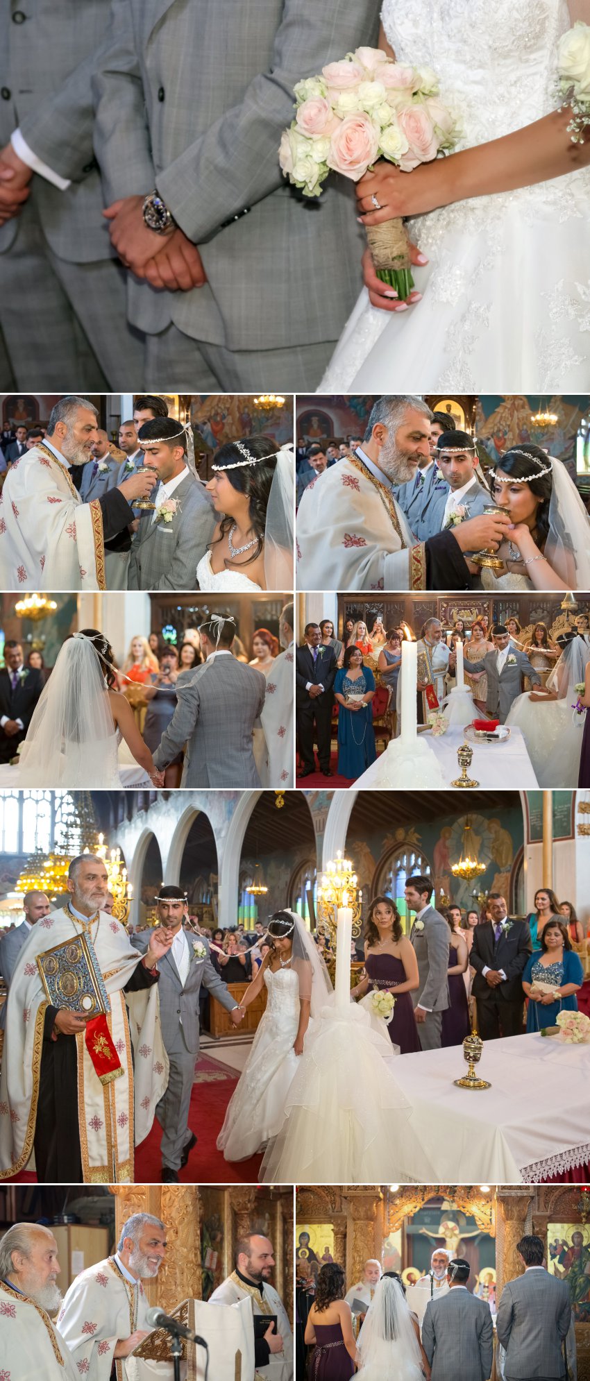 The wedding was at St John the Baptist Greek Orthodox Church in North London. There are around two dozen Greek Orthodox churches in the capital, with this being one of the largest communities. The ceremony was beautiful, with all of the typical customs would expect including the blessing of the rings, the wearing of the wedding crowns which symbolise the uniting of two people and two families, and walking around the altar three times to represent the lifelong journey on which the couple is embarking.