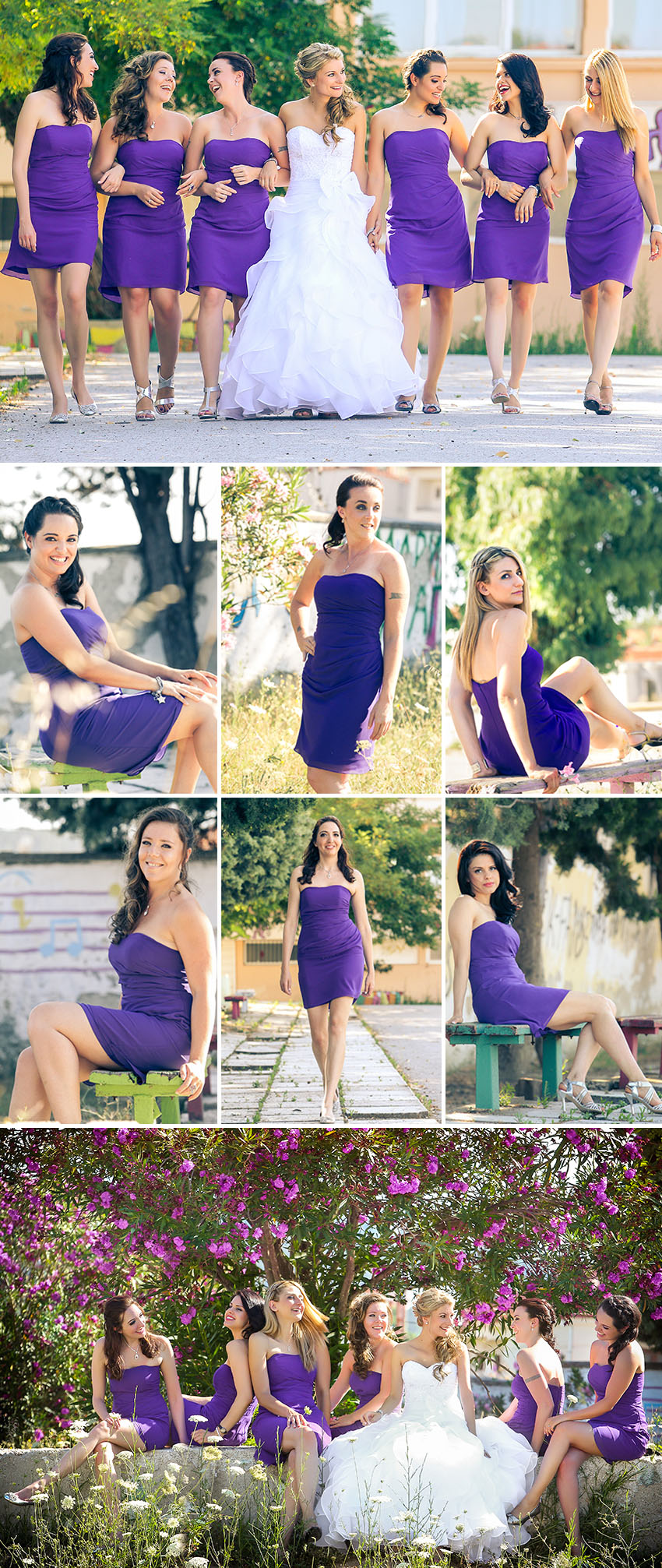 I loved how this couple incorporated touching and fun traditions into their day, linking their religion and heritage with their future. The bride wrote the names of her single friends on the soles of her shoes on the morning of her wedding, with superstition saying that the person whose name rubs off first will be the next to be married. Her wedding dress was classic, while the bridesmaids’ purple strapless mini-dresses and silver shoes added a modern twist to the wedding party.
