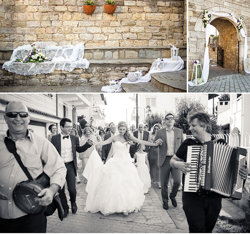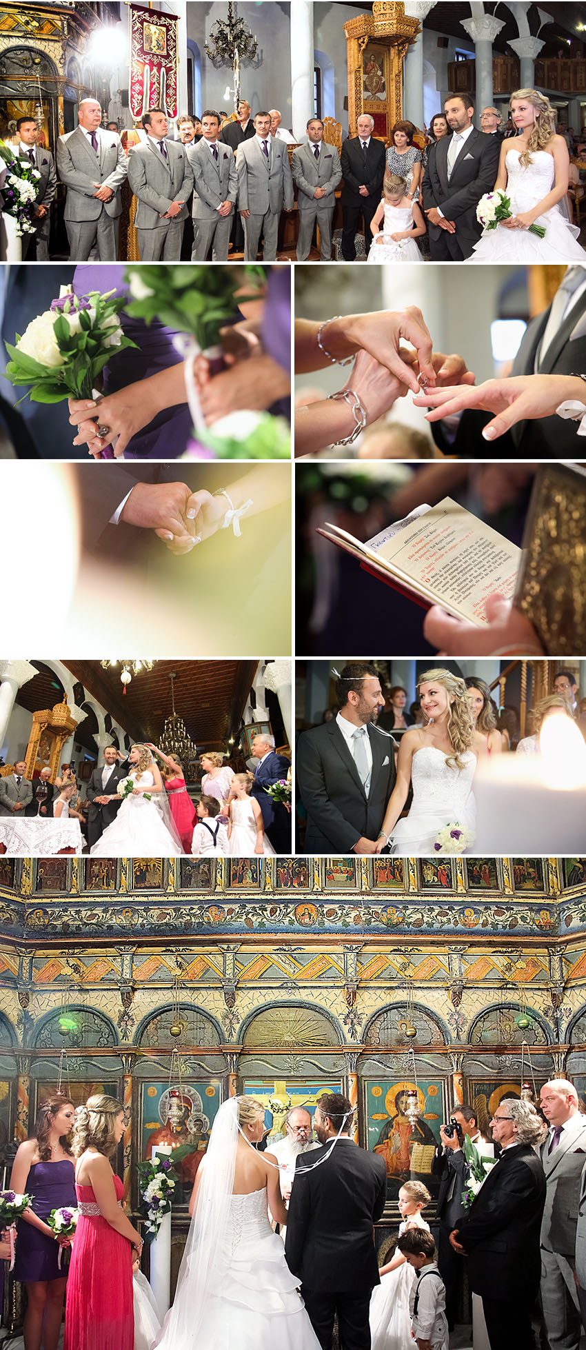 Maybe it was his natural ease, or possibly it was the sunshine, but groom was remarkably relaxed when I caught up with him and his groomsmen before the ceremony. Kassandra has a rich religious heritage and is dotted with beautiful churches. Surrounded by centuries of tradition in a church decorated with colourful frescoes, it was impossible not to feel as if the couple were adding their own footnote to the church’s long history.